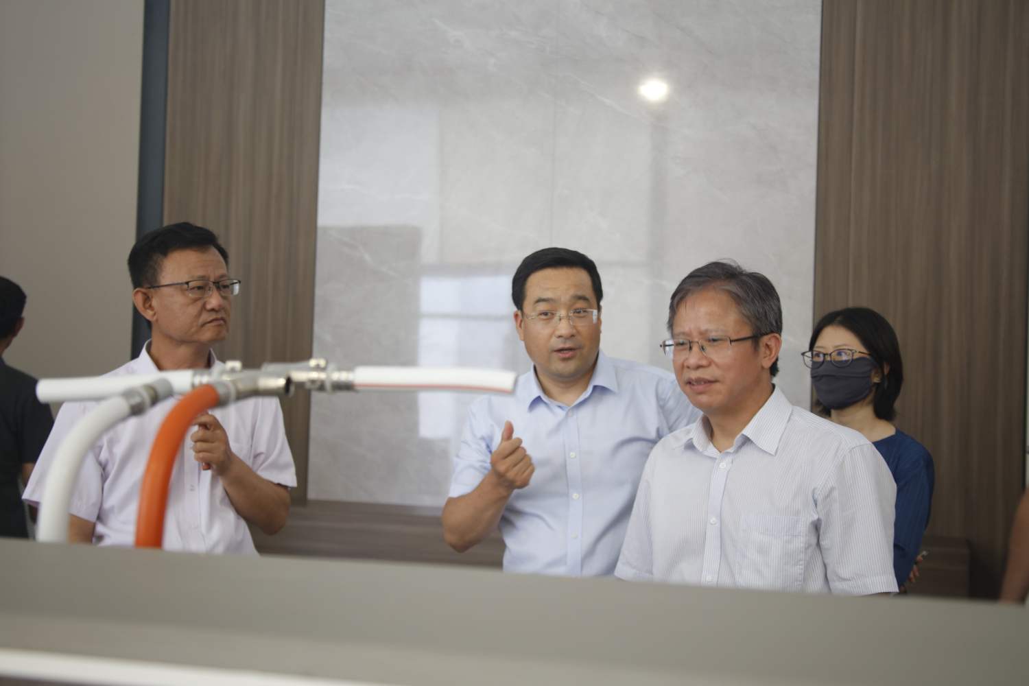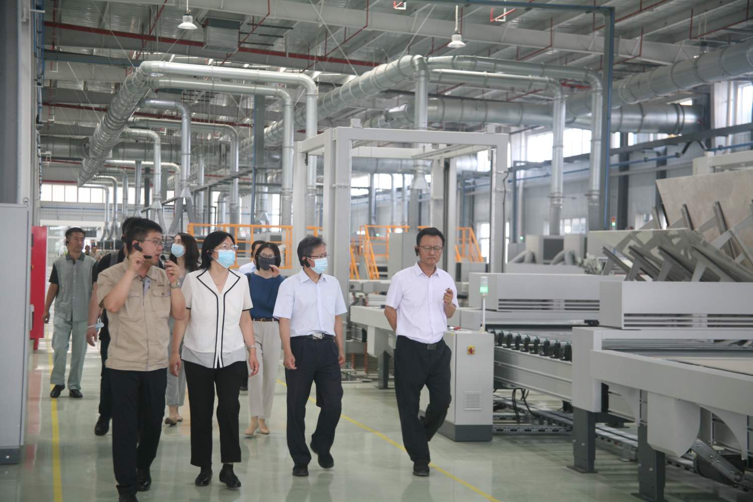 7月7日,住房和城鄉建設部建筑市場監管司廖玉平副司長、住房和城鄉建設部科技與產業化發展中心劉美霞處長一行5人赴和能人居天津濱海裝配式化裝修制造工廠調研考察裝配化裝修智能建造生產線和箱板式鋼結構體系。陪同調研的有天津市住建委建筑市場處副處長金伏,中國建筑設計研究院裝配建筑院趙鈿院長,以及和能人居科技集團相關領導。